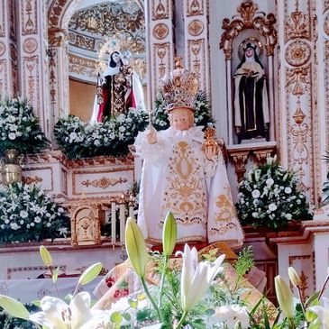 El niño Jesús de Praga y la archicofradía te esperamos con los brazos abiertos cada Domingo 4° de mes en el Templo Del Carmen de Querétaro a las 5:00 pm para rezar la Coronilla